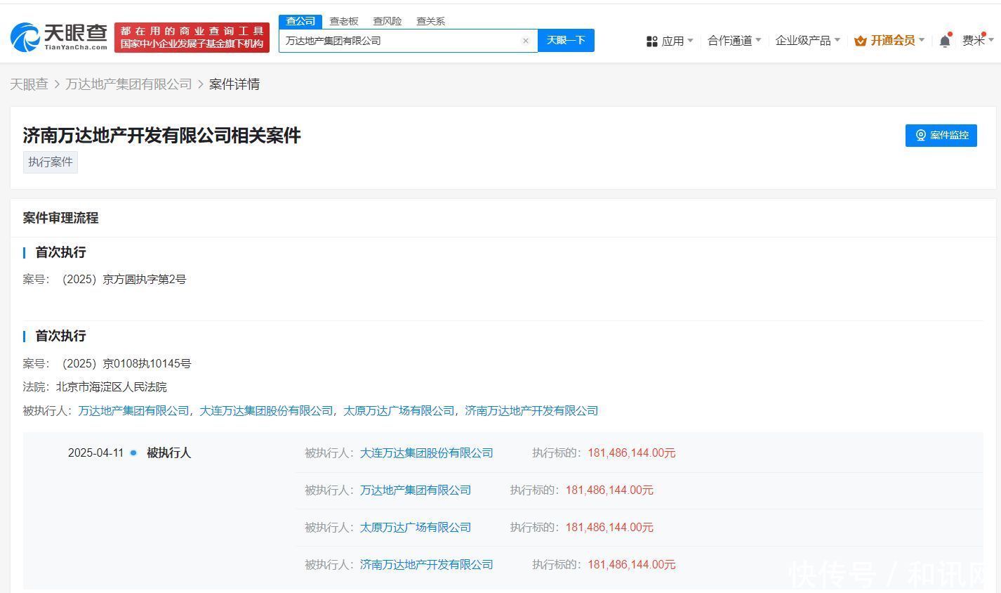 天眼查法律诉讼信息知道,近日,大连万达集团股份有限公司、万达地产集团有限公司等新增一则被扩充东说念主信息,扩充意见1.8亿余元,扩充法院为北京市海淀区东说念主民法院。