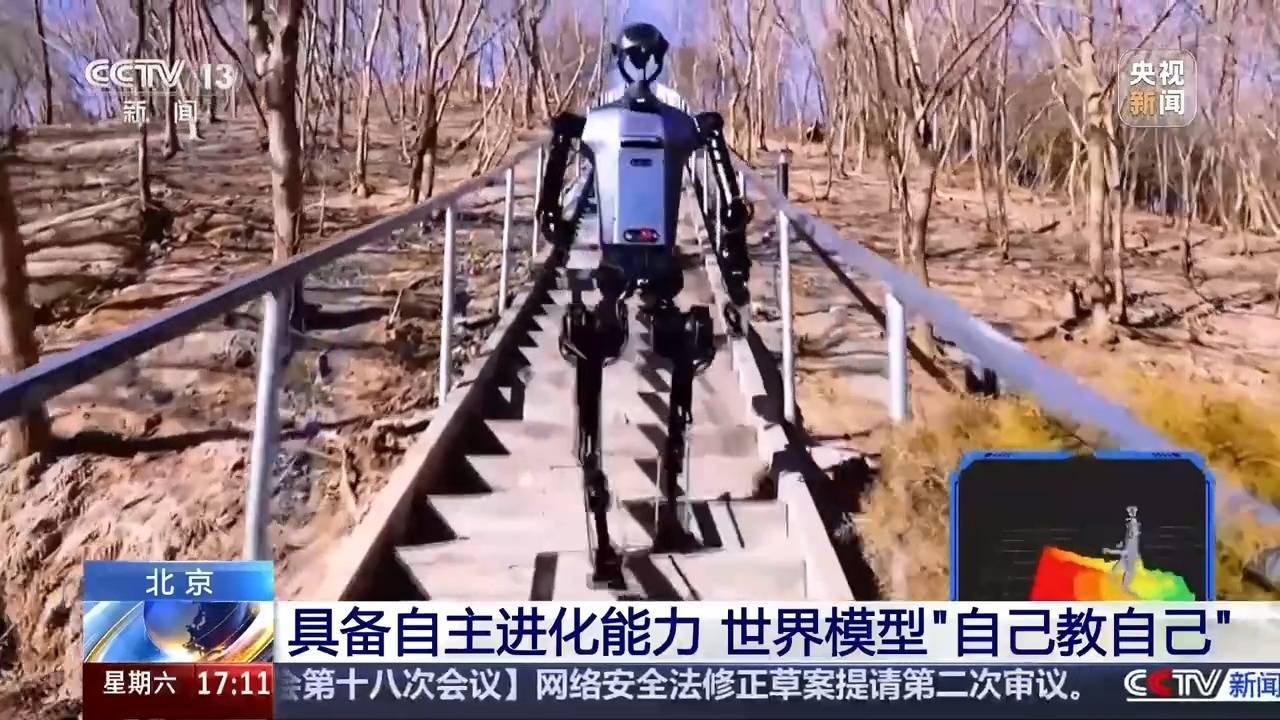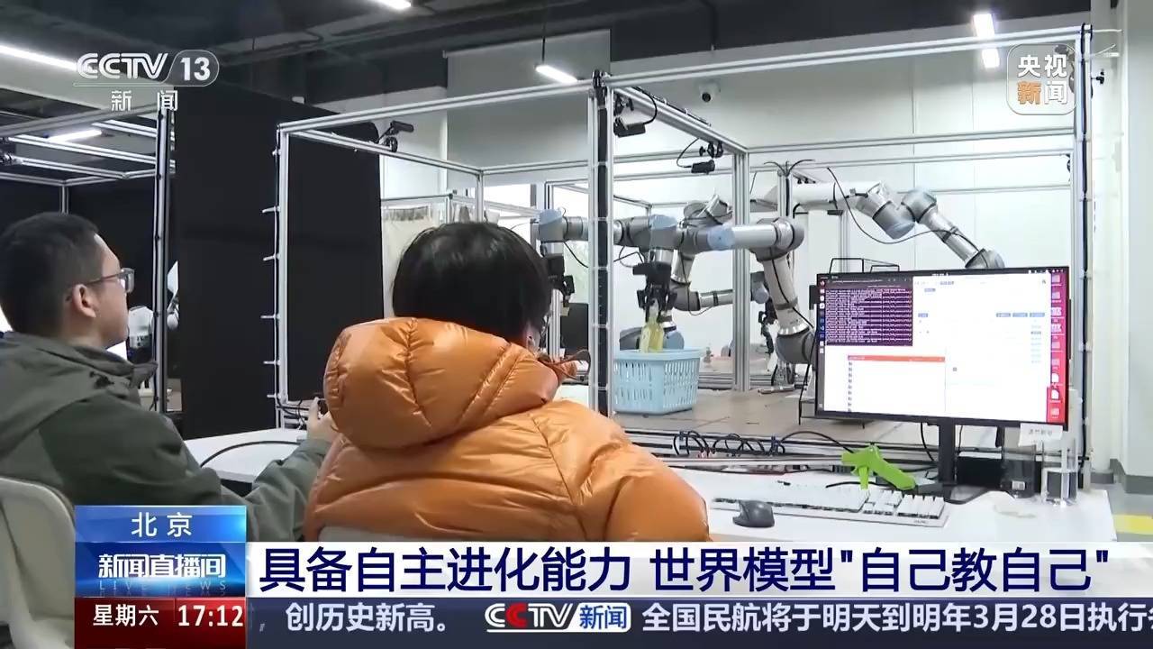 r总台记者 袁嘉忆:在北京东说念主形机器东说念主改进中心,各式形态的机器东说念主实质正在进行具身智能数据蕴蓄和动作模子进修。这台“天工”机器东说念主正在自主地1∶1复刻视频中的动作姿态,而这个视频即是机器东说念主在活动之前“联想出来”的预演画面,不错用来辅导它与真实天下的交互。这么从联想预演到动作实施的“知行合一”的材干,依托的即是由科研团队自主研发的具身天下模子。